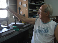 dificuldade atual de locomoção, ele não consegue ficar muito tempo longe dos balcões de trabalho. Supervisiona tudo com um olhar de lince. “Não basta saber encadernar, tem que ser criativo. A encadernação é um dom artesanal que se mantém ao longo do tempo, precisa ser dominada por um artista competente e criativo. Já ensinei muita gente, como a bibliotecária aqui da cidade, que aprendeu a arte comigo. Prefeitura nunca tem dinheiro e ela faz quase tudo por lá.”, relata o minucioso profissional.