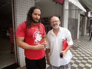 - Em 25.05.2008 publiquei: “MARCÃO UM VERMELHO DE CORPO E ALMA - Marcão, ou simplesmente Marcos Paulo Caselachi Resende é essa grande figura aí da foto, ocupando todos os espaços, pois é grande no tamanho e no amor à causa que defende e professa. Não é uma pessoa de fácil convivência, pois todos os idealistas deveriam ser assim mesmo e não abrir mão no caminho pela conquista do que acreditam. Marcos é um teórico como poucos, lê tudo o que tem a ver com a causa comunista e poucos conseguiram atingir o nível de pensamento desse stalinista convicto e inveterado. Põe a cara para bater e não esconde suas convicções(...) Quando as coisas não vão lá muito bem entre amigos, os poucos que ainda lutam pelos ideias libertários, recordo algo que li, de um indignado com certos distanciamentos, mais ou menos assim: "Somos tão poucos e vamos brigar entre nós?". Marcão é esse meninão de 27 anos, um bravo, daqueles que não esmorece e que, mesmo quando estamos sem papear por uns tempos, continua privando de algo único, uma amizade sincera, como poucas que tive na vida. PS.: Essa foto aí em cima é um acontecimento, registrando quando Marcão rasgava a revista Veja, aquela que tentava desqualificar Che Guevara. Se fossemos rasgar as Vejas atuais, acho que toda semana teríamos que fazê-lo, pois essa revista anda num nível tão baixo, que nem de graça quero tê-la em minha casa. Marcão pensa do mesmo jeito”.